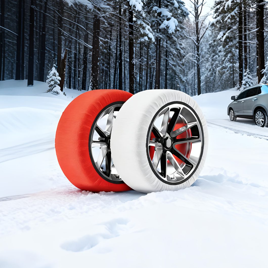 Πανί χιονιού για αυτοκίνητο, κόκκινο και λευκό χρώμα, κάλτσες χιονιού για ελαστικά, υφασμάτινες αλυσίδες χιονιού, εύκολη εγκατάσταση