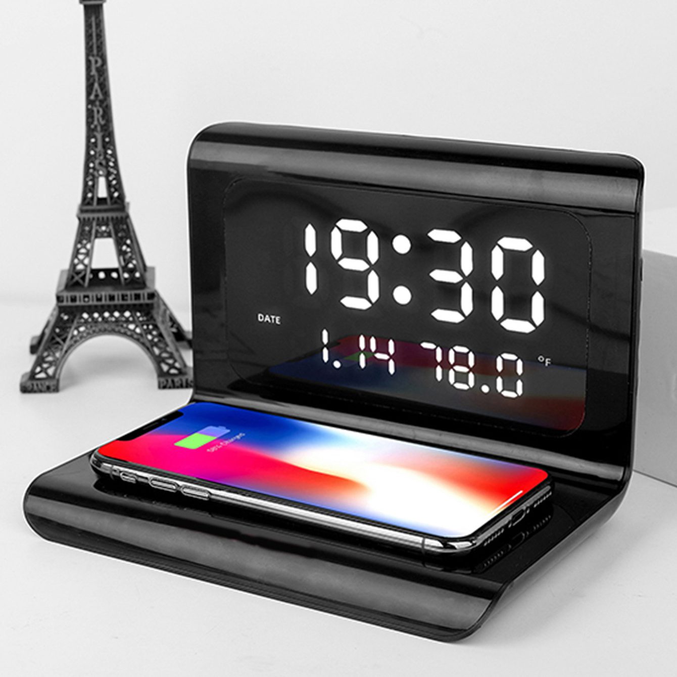 Πολυλειτουργικός Ασύρματος Φορτιστής, Οθόνη Χρόνου και Θερμοκρασίας, Ξυπνητήρι για Υπνοδωμάτιο ή Γραφείο