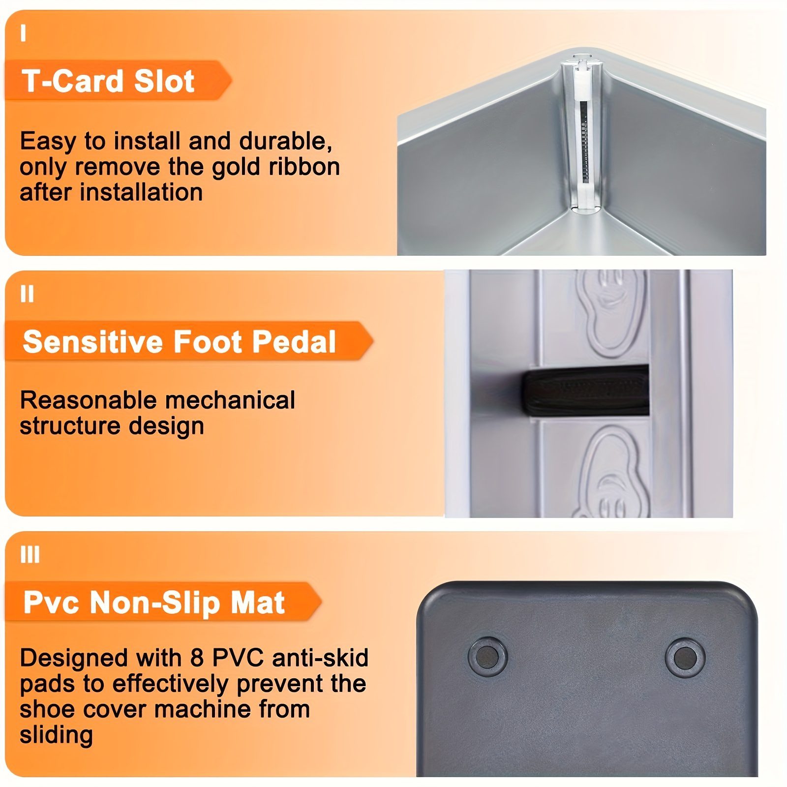 [Καινοτόμος και Αβίαστη Σχεδίαση] Με την ανθεκτική αλλά κομψή σχεδίασή του που διαθέτει μια λεία επίστρωση από ψημένο σμάλτο, η μηχανή μας για κάλυμμα παπουτσιών εγγυάται μακροχρόνια απόδοση. Λειτουργεί χωρίς την ανάγκη ηλεκτρικής ενέργειας, χρησιμοποιώντας ένα μηχανικό πεντάλ για αυτόματη εφαρμογή καλύμματος παπουτσιών. Πείτε αντίο στο σκύψιμο και καλωσορίστε μια εξοικονομητική χρόνου και αβίαστη εμπειρία