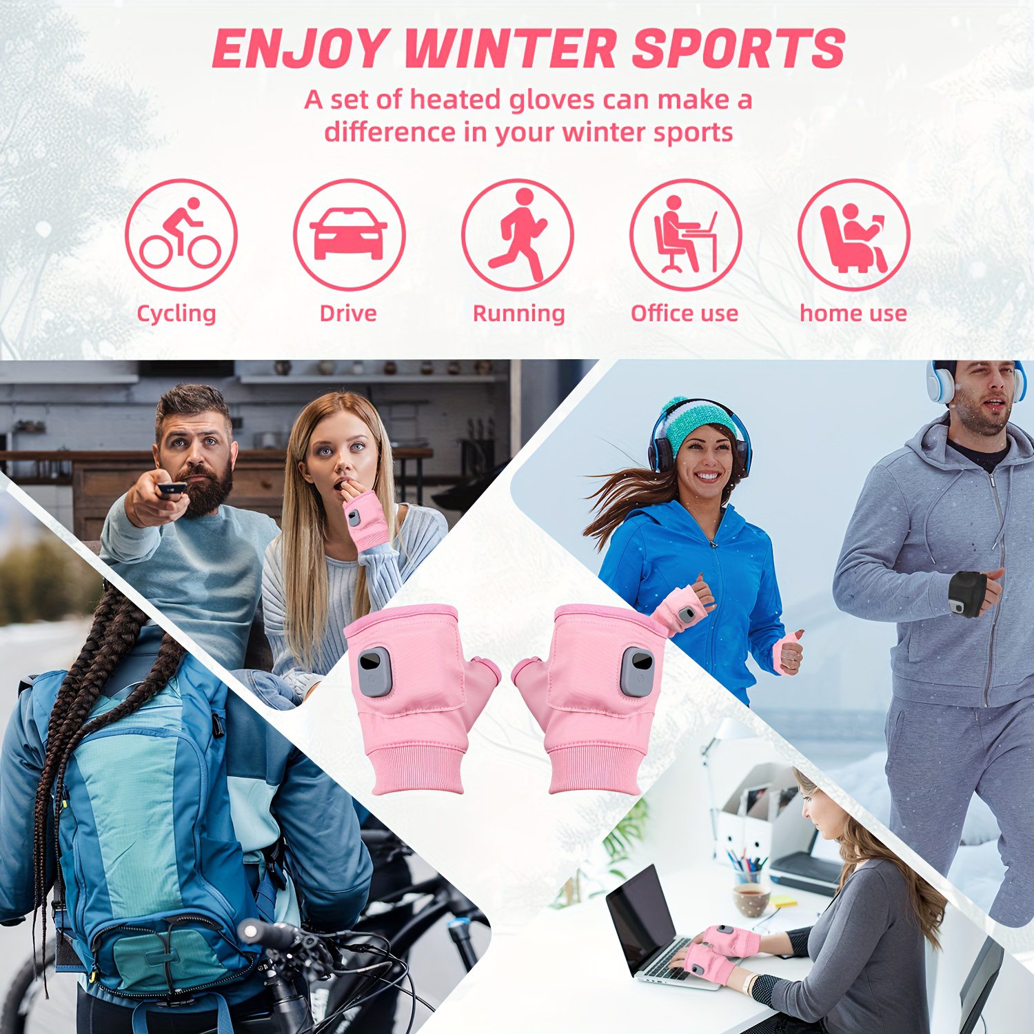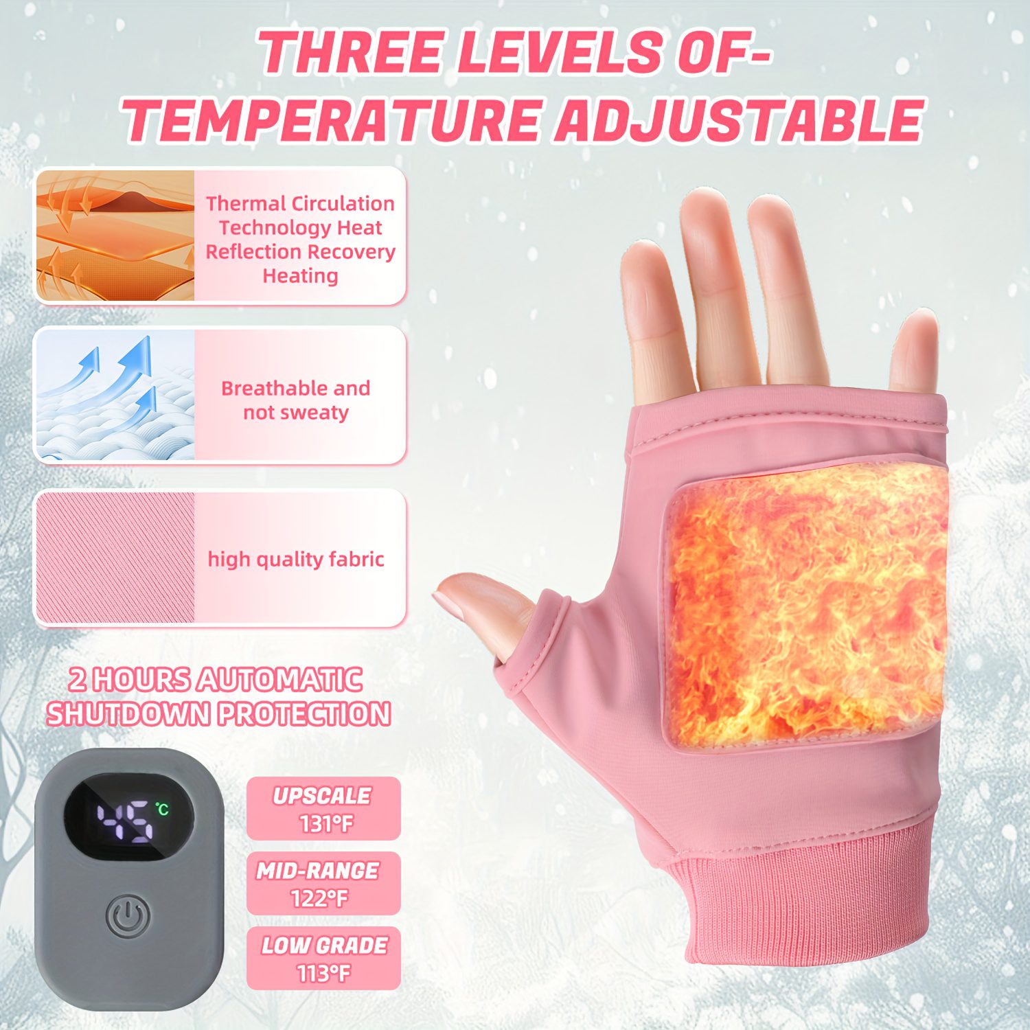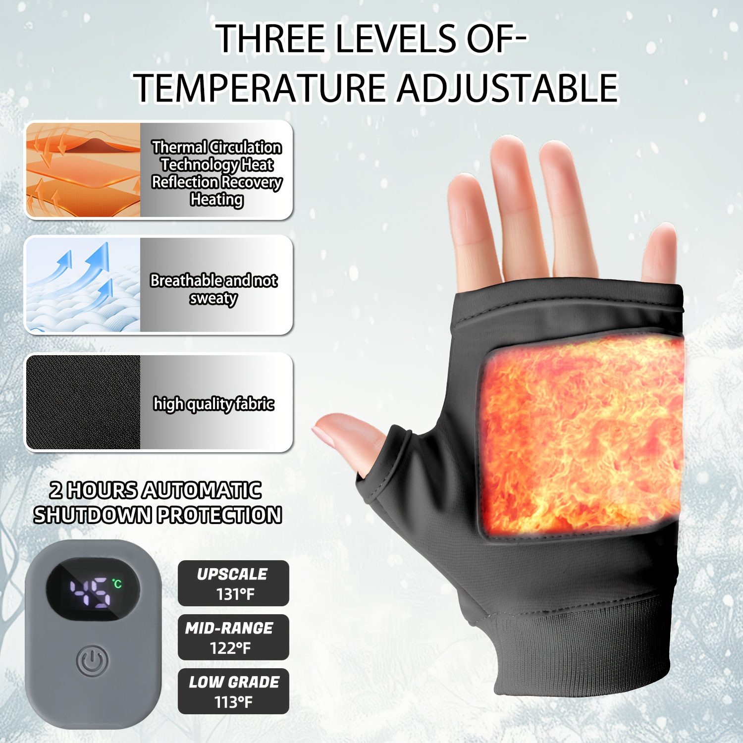 Θερμαινόμενα Γάντια με Φορητό Σχεδιασμό Μισού Δακτύλου, Ρυθμιζόμενη Θερμοκρασία σε Τρία Επίπεδα (45℃, 50℃, 55℃)
